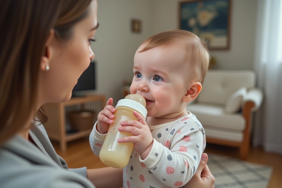 En cas de biberon, la préparation du lait infantile impose davantage de structure. Les laits pour nourrissons doivent être reconstitués avec rigueur, et proposés à intervalles réguliers, tout en respectant la satiété de l’enfant. En moyenne, cinq biberons par 24 heures suffisent, mais la quantité dépend du contexte et de l’évolution de la courbe de poids.
